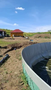 The rainy season has truly arrived in Uganda’s Circular Refugee Camp, Imvepi. Despite the downpours, our partners completed the installation of a Sanisecure sanitation system for treating faecal sludge – and it’s now up and running!
